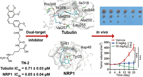 论文信息:Zheng L., Zou Y., Xie T., et al. Discovery of a Dual Tubulin and Neuropilin-1 (NRP1) Inhibitor with Potent In Vivo Anti-Tumor Activity via Pharmacophore-based Docking Screening, Structure Optimization, and Biological Evaluation. J. Med. Chem. 2023, https://doi.org/10.1021/acs.jmedchem.3c01572