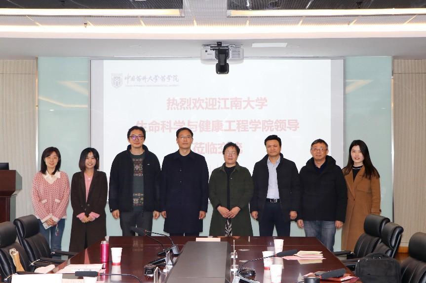 3月8日,江南老员工命科学与健康工程公司党委书记史志洪、经理尹健等一行来公司调研交流。药公司党委书记张仕英,副经理(主持行政工作)吴照球,党委副书记、副经理吴春勇等院领导在江宁校区G514接待江南大学一行。
