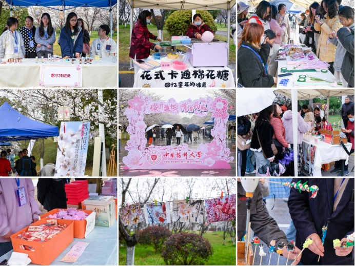 活动期间,基建后勤处策划了植物展,将500份多肉植物送给师生;后勤服务集团总公司举办美食展,请师生品鉴非遗糖画、樱花酥、樱花露等美食;员工会提供多款樱花相关文创产品;伟德国际victor1946师生联手制作樱花香氛、自制免洗凝胶、DIY花味唇膏、绘制路面樱花,体验面部彩绘,用药学的浪漫解锁独一无二的春日气息。