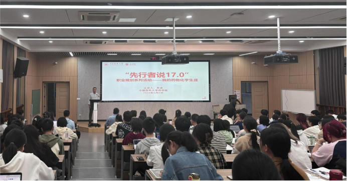 讲座中,吴波博士以国际化视角,带领同学们回顾了国内外药学行业的发展脉络,介绍了当前药学领域的新热点、新动态,并围绕自身“药化生涯”,回忆了求学、求职、创业过程中的心路历程。吴博士对药学学科、新药研发的深刻理解和对母校的情谊绵长让在场同学深受触动。随后,他以学者、创业者的身份,指导同学们如何及早发现自己的职业兴趣,怎样做好职业规划,最后他建议同学们要时刻关注行业前沿动态,积极思考,持续在创新和突破的道路上深耕细作,为人类的健康发展贡献药大人的智慧。