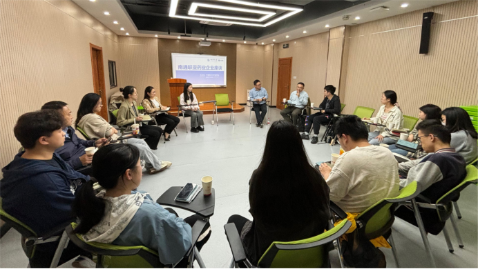 交流会伊始,吴波博士对当前国际上药学领域的研究热点和动态进行了介绍,并对自己的求学、求职及创业的经历和心路历程进行了分享,吴博士用一个个小故事为在场师生描摹了不同时代下,药学人拼搏奋进,锐意创新的宏伟画卷以及背后的一些动人故事,以过来人的身份为同学们剖析药学科研中的道与术。