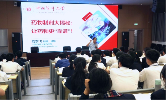 在宣讲活动现场,刘东飞教授以“药物制剂大揭秘:让药物更‘靠谱’”为主题,为省靖中高二学子带来了一场生动的科普讲座。他从日常生活中的药物制剂实例出发,以浅显易懂的语言引导员工们认识药物制剂在现代医药中的关键作用,并详细介绍了公司的专业特色、研究实力、团队力量、科研成果、校园生活,全面展示了公司的综合实力和独特魅力。他鼓励同学们勇于探索,积极参与药学专业的学习与研究,为医药事业发展贡献智慧和力量。