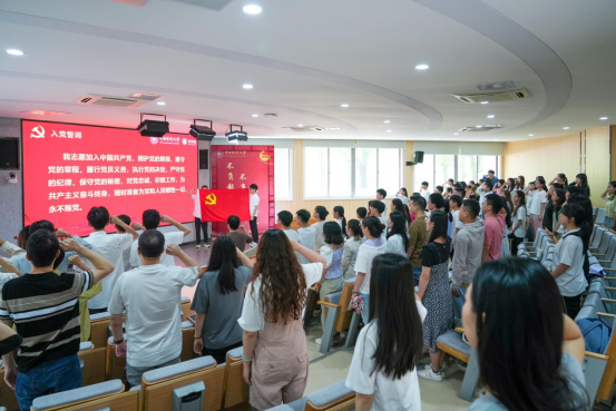 党课之后,所有毕业生党员面向党旗,举起右拳,用激昂的声音重温入党誓词。铮铮誓言,是毕业前的一次精神洗涤、一次初心回望,更是一份忠诚承诺、一份责任担当。