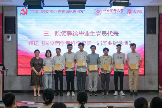 随后,张仕英书记为毕业生党员代表赠送《国立药学专科公司第一届毕业纪念册》,勉励全体党员不忘中国药老员工的初心使命与责任担当。