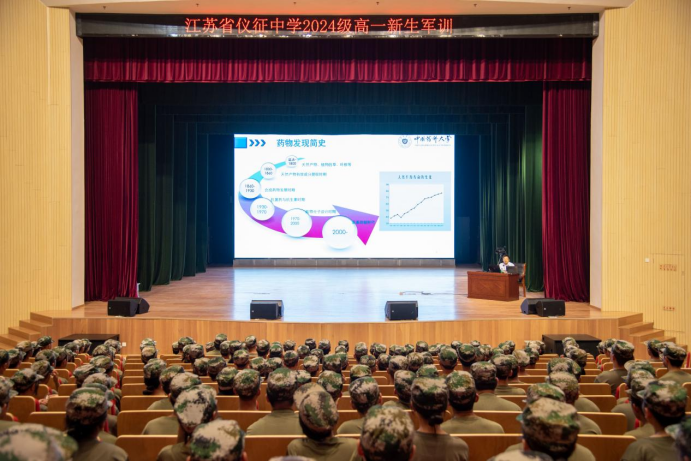 随后,刘李教授以“战胜疾病的武器——药物”为题,向仪征中学的同学们作药学知识科普讲座。同学们在刘李教授生动而幽默的讲解下,领略了药物发现的故事,体会到了科学家们对药学事业的坚定信仰,讲座现场气氛热烈。