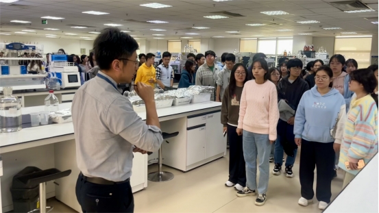 讲座后,分析研发部门总监胡成松带领公司师生一行参观分析研发部门实验室,并对其公司的整体情况、内部环境、设施设备等进行了实地讲解。