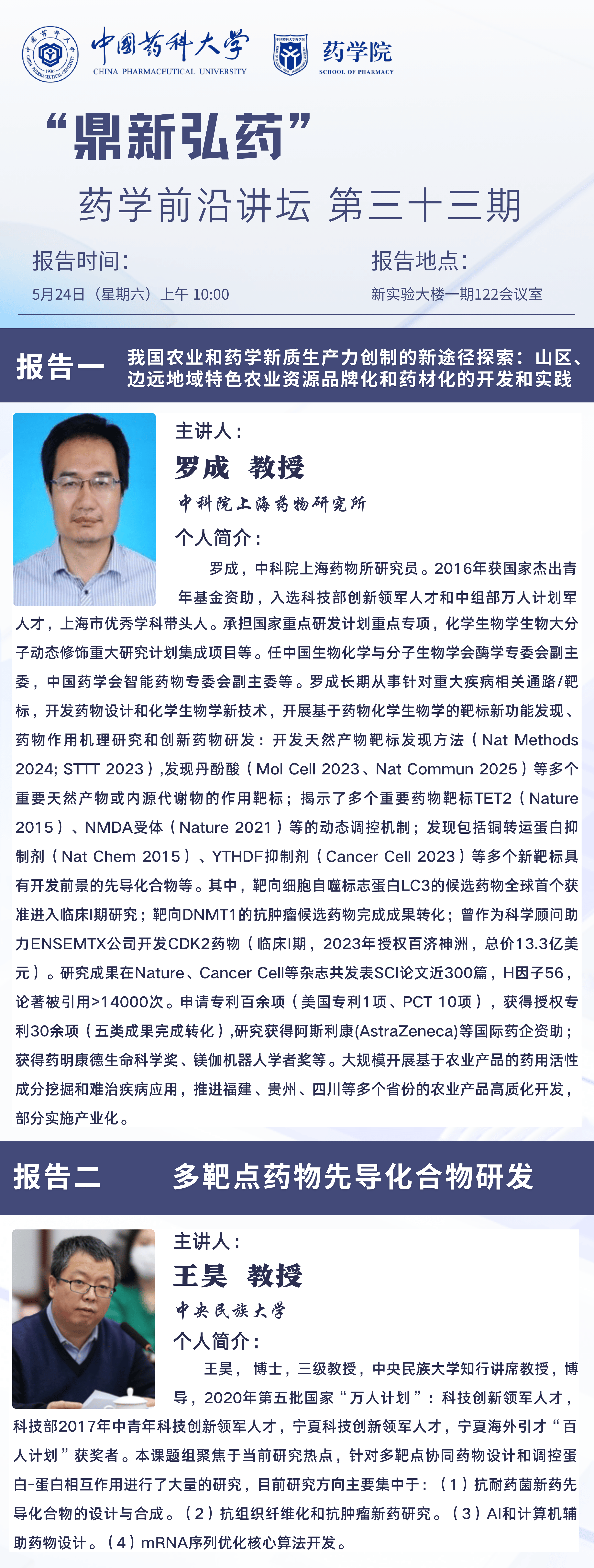 “鼎新弘药”药学前沿讲坛第三十三期通知
