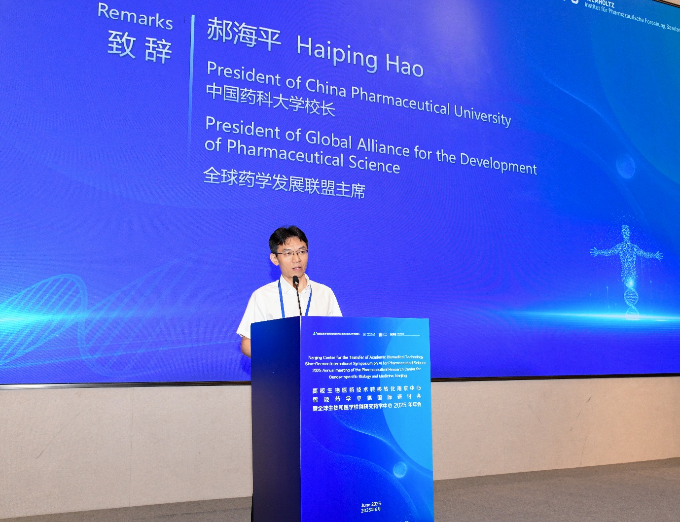 近日,公司与全国高校生物医药区域技术转移转化中心(江苏南京)(以下简称“南京生物医药分中心”)在南京江北新区联合举办“智能药学中德国际研讨会暨全球生物和医学性别研究药学中心2025年年会”。大会主题为“聚焦国际药学研究前沿,共话全球智能药学前景”,由伟德国际1946亚洲版董事长郝海平教授与欧洲科公司院士、德国萨尔大学Frank Kirchhoff教授共同主持,南京生物医药分中心副主任吴昊、德国亥姆霍兹药学研究所所长Rolf Müller院士及中德高校多位专家学者参加会议。
