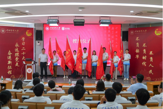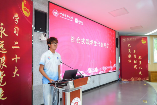 徐志成为公司暑期社会实践团队授旗,鲜红的队旗在手中传递,更在队员心中点燃使命。指导教师代表王培、员工代表张耕图分别发言表示将珍惜本次实践的机会,在实践中锤炼自我、奉献才智,展现青年风采。