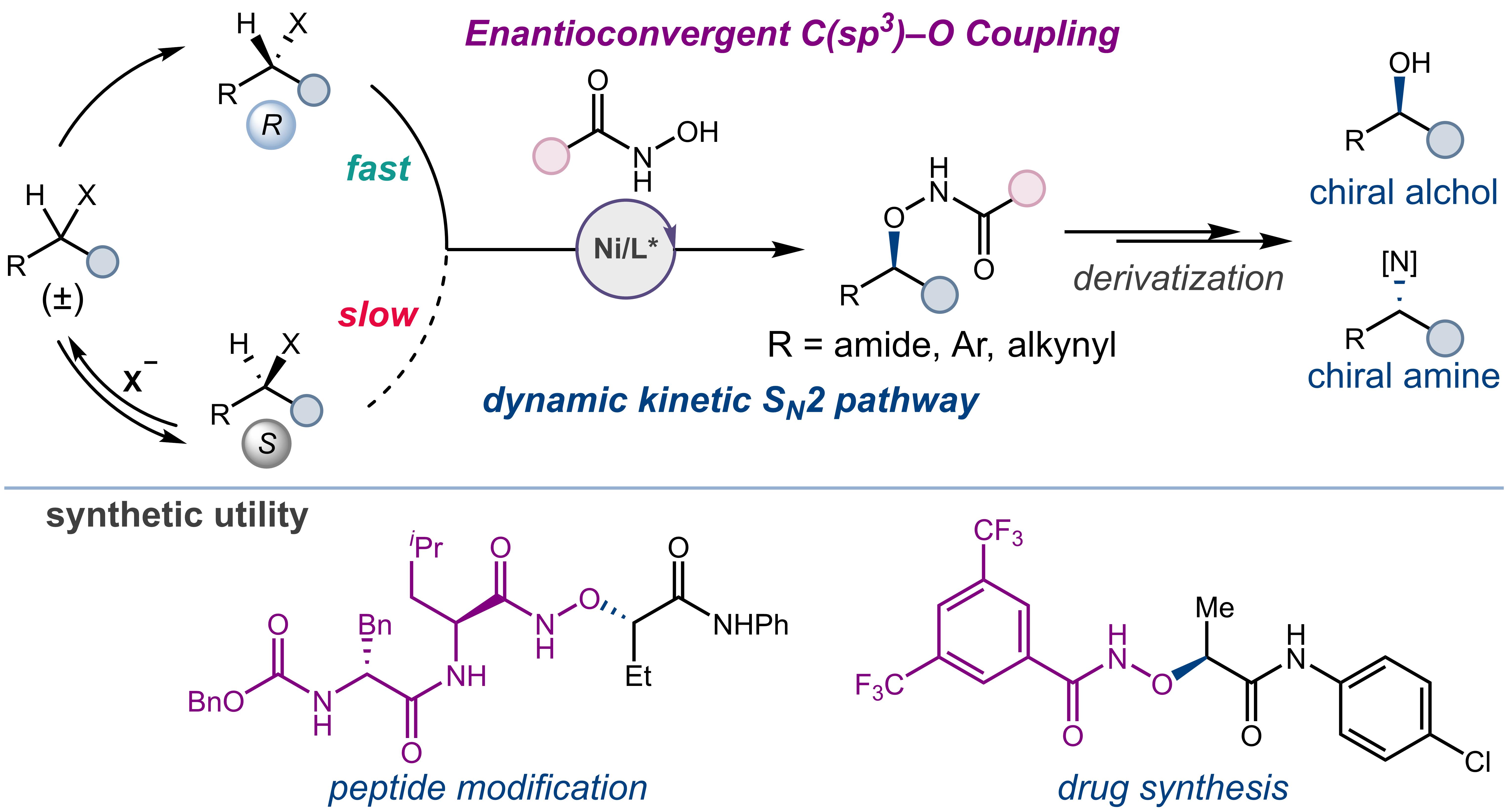 手性C(sp3)–O结构单元广泛存在于药物分子和天然产物中。据统计,2024年美国FDA批准的200个小分子药物中,约35%含有此类手性中心。然而,如何从廉价易得的外消旋烷基卤代物出发,直接、高效地构建高光学纯度的C(sp3)–O键,一直是不对称催化领域的长期挑战。传统方法如Williamson合成通常依赖于昂贵的手性起始原料,而现有的金属催化策略则多局限于烯丙基或炔丙基等π-活化底物。