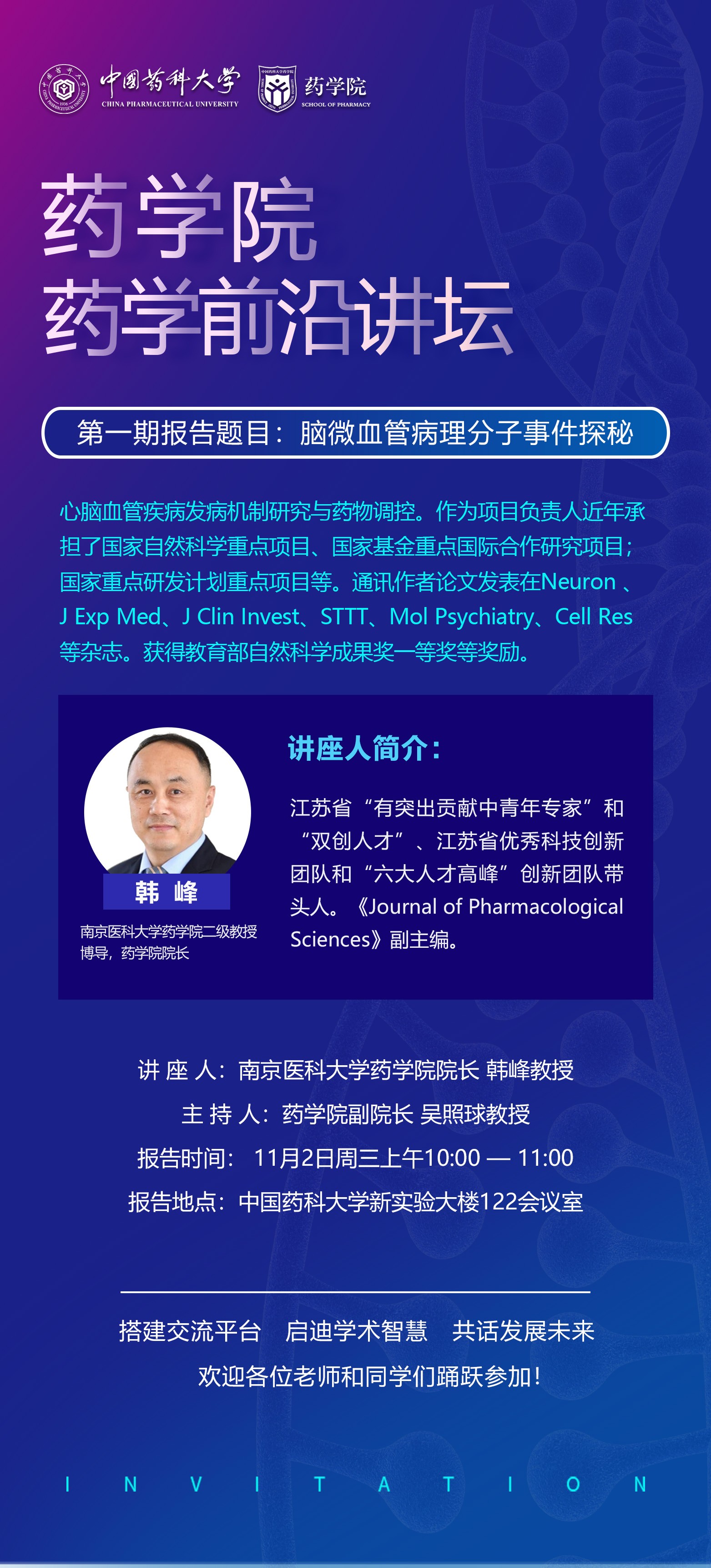 伟德国际victor1946第一期药学前沿讲坛通知
