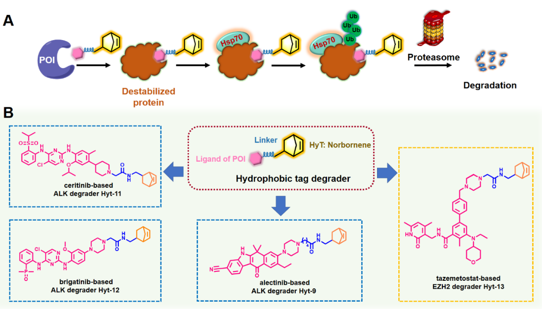 自2001年首次报道蛋白水解-靶向嵌合体(PROTACs)分子以来,靶向蛋白降解(TPD)技术已成为一种针对难治性致病蛋白的有效策略。随着PROTACs代表分子ARV-110和ARV-471临床数据的披露,更激发了学术界及产业界对TPD技术的兴趣和热度。与PROTACs技术相比,目前人们对疏水标签(Hydrophobic Tag, HyT)技术的机理研究以及临床应用相对较少。虽然已有一些不同结构类型的疏水标签被报道,但大多数疏水标签的理化性质或药代性质不佳。此外,低生物利用度导致目标蛋白降解不完全,这些都成为疏水标签分子开发和临床应用面临的主要挑战。