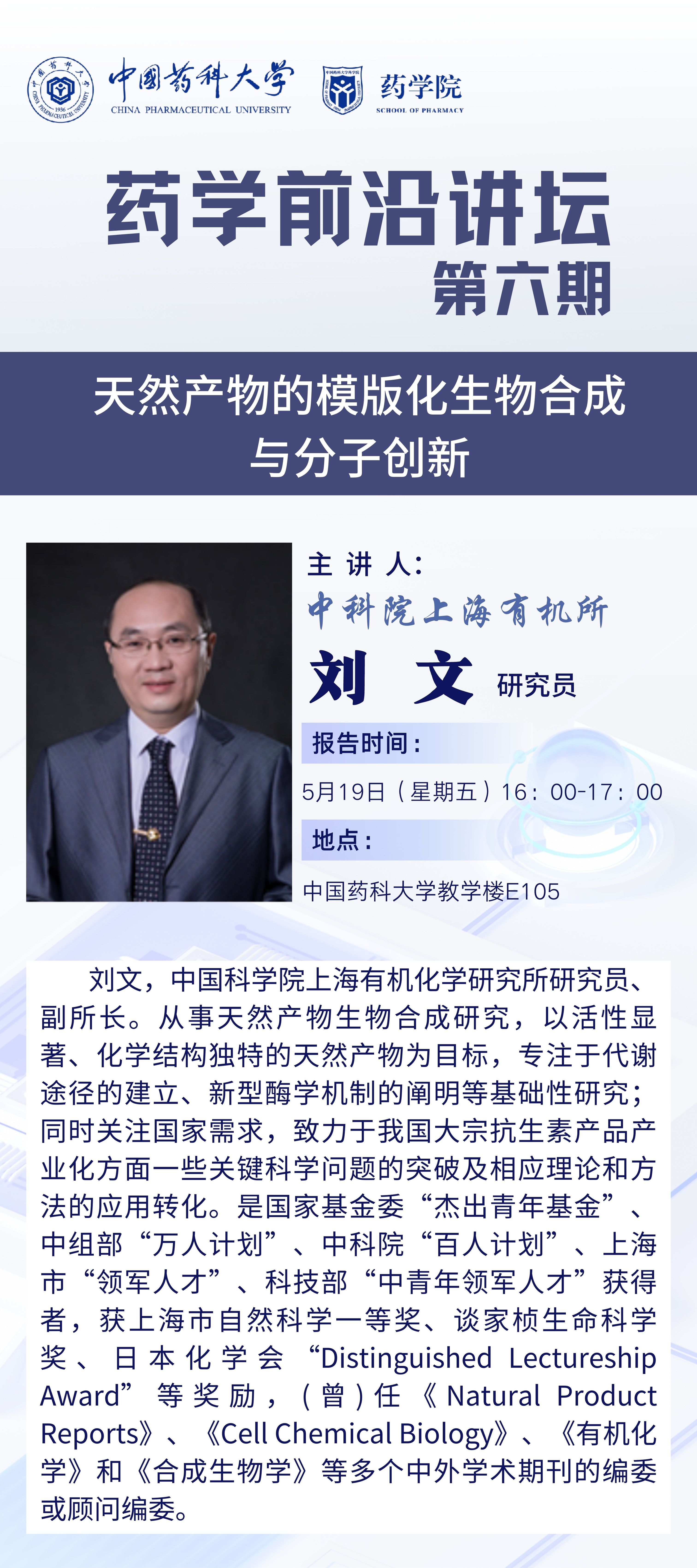 伟德国际victor1946第六期药学前沿讲坛通知