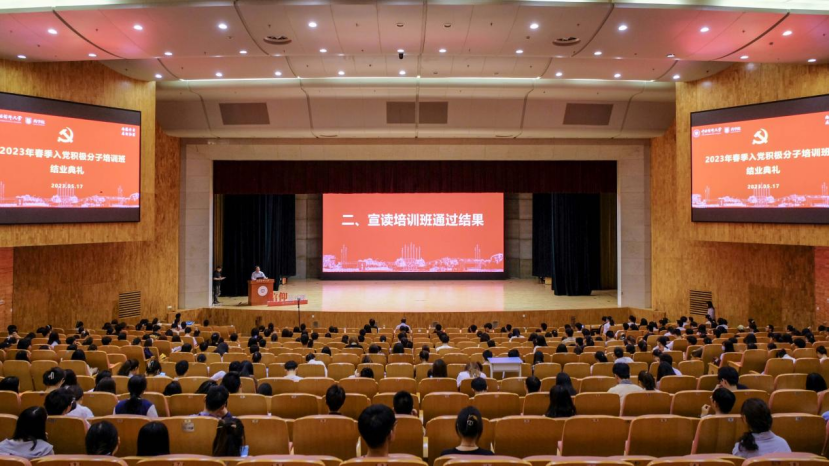 结业典礼在雄壮激昂的国歌声中正式拉开帷幕。孟祥康副书记对本期入党积极分子培训班通过情况进行了介绍。张仕英书记为培训班各班代表颁发结业证书。