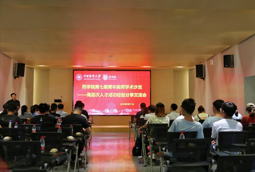 姜正羽教授以“同向同行,共同前进”为题,从科研的角度以自身课题研究举例如何准确定位学科方向,以幽默诙谐的方式指导青年教师如何尽早获得“第一桶金”,他希望大家积极参加学术活动、立足自身研究特色,坚持不懈申请各类基金项目,从失败中找经验,在不足中谋发展,更好地完成科研工作者的身份转换。刘东飞教授基于自身科研经历,以药剂学学科特点为切入点,和大家分享如何凝练科学问题,如何高效进行开发、缩短制剂工期、进行工程应用,将学科特点与生产工艺紧密连接。他表示科研工作要坚持不懈探索,以“十年磨一剑”的恒心和毅力展开科学研究。王磊副教授从课题研发困境入手,通过创新药物的应用转化研究、靶向小分子药物的结构优化、候选药物的专利授权、封面文章的发表等几个方面回顾了团队的研究历程,并对青年教师提出“明确方向、了解规则、知己知彼、自我反思”等建议。与会师生纷纷发言交流,四位老师给予了细心指导,现场气氛浓厚,互动效果热烈。