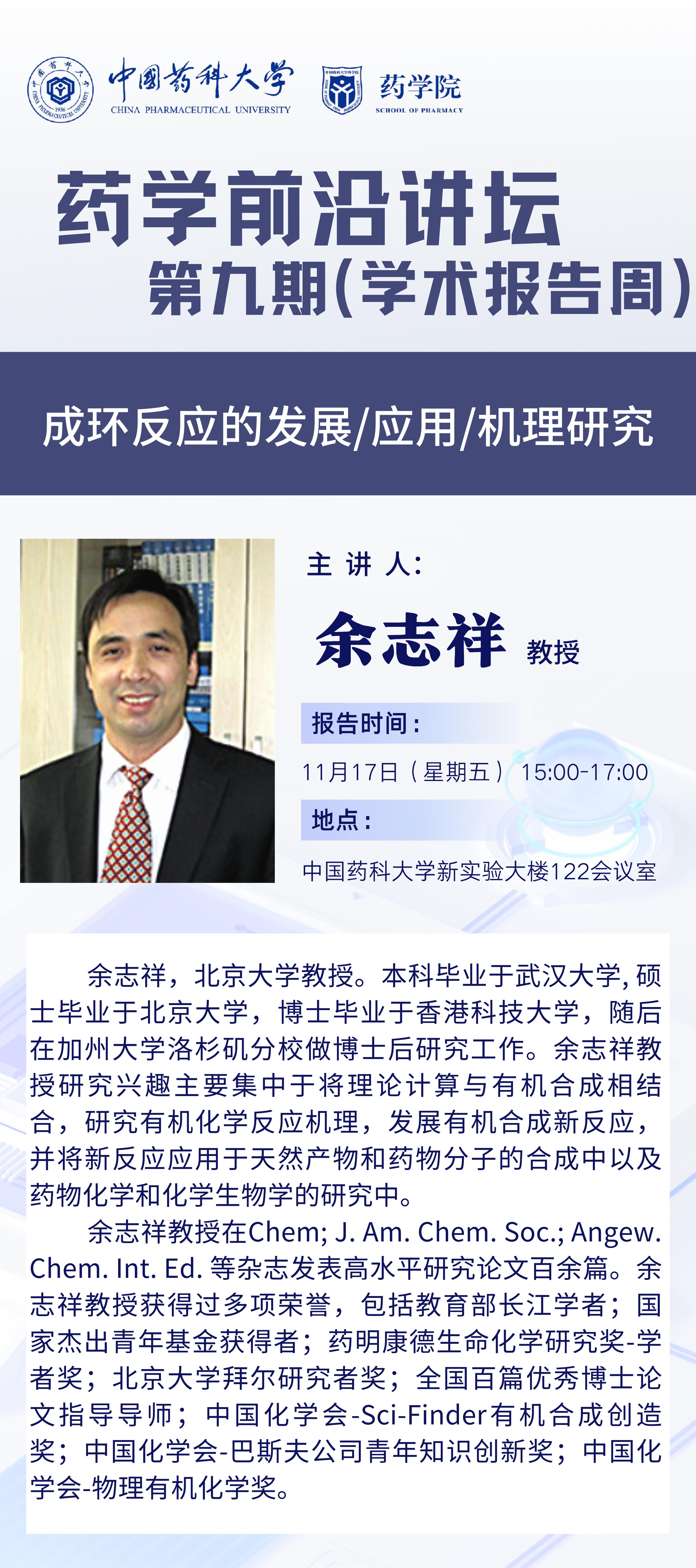 伟德国际victor1946第九期药学前沿讲坛通知(学术报告周)