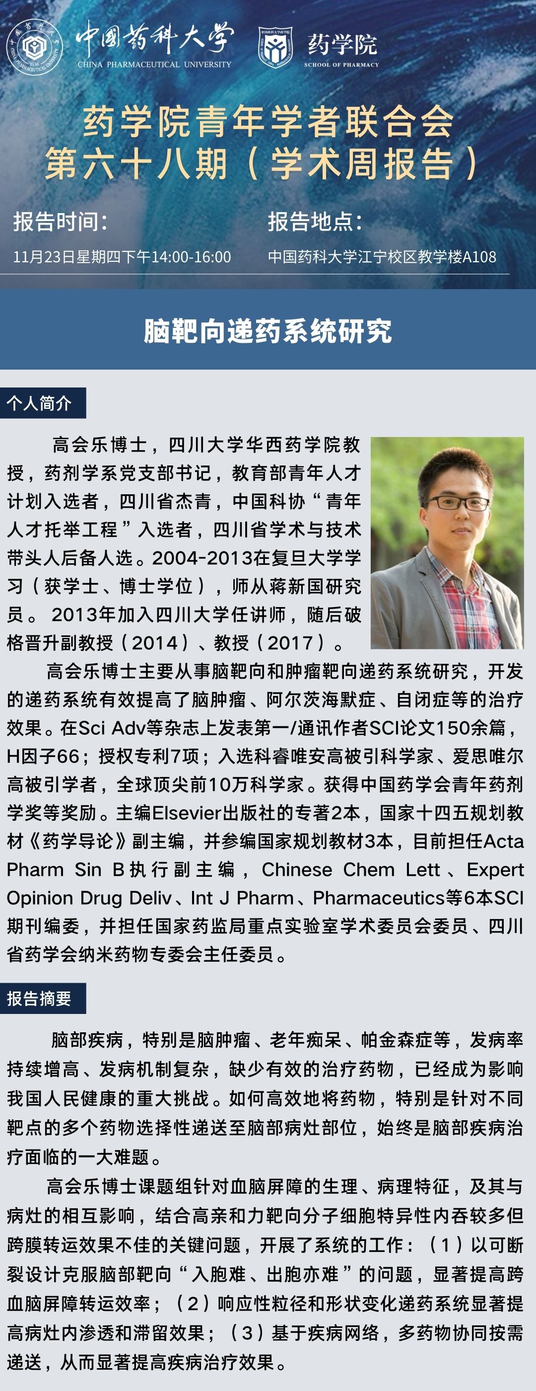 伟德国际victor1946青年学者联合会第六十八期学术报告通知(学术报告周)