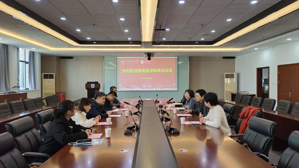 11月29日上午,赣南医公司科研中心主任刘志平一行5人专程来公司进行考察交流。伟德国际victor1946副经理(主持行政工作)吴照球、伟德国际victor1946副经理柯学、校公共实验平台主任赵丽参会。