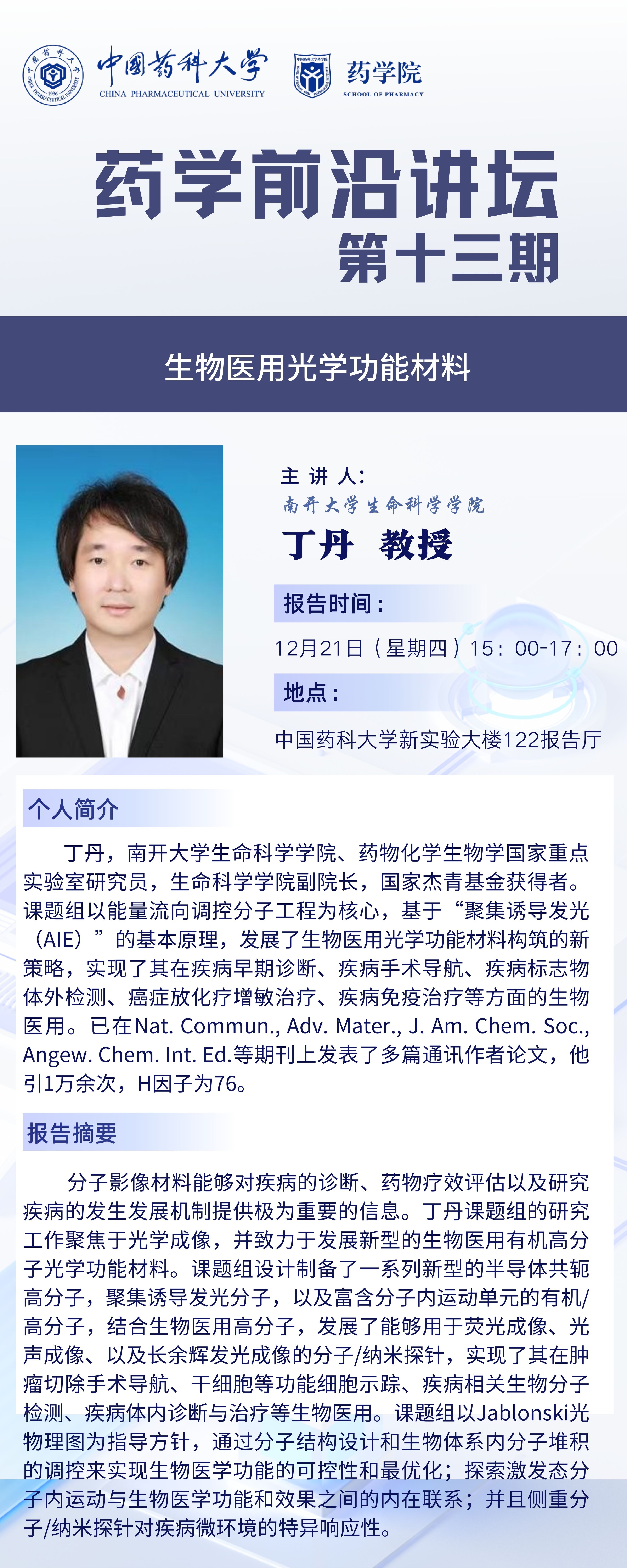 伟德国际victor1946第十三期药学前沿讲坛通知