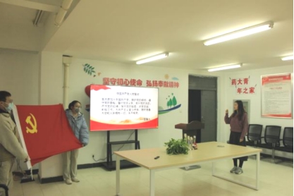 活动最后,为进一步强化支部党员同志的党性,支部全体党员同志共同面向党旗庄严地宣读了入党誓词。